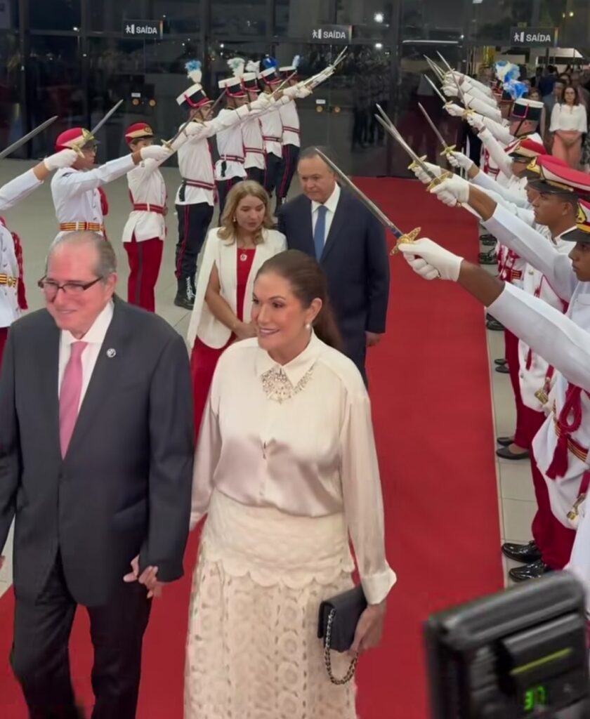 A deputada Iracema Vale presidente da Assembléia Legislativa deslumbrante ao lado do seu amigo governador Carlos Brandão chegando na cerimônia de posse do TJ